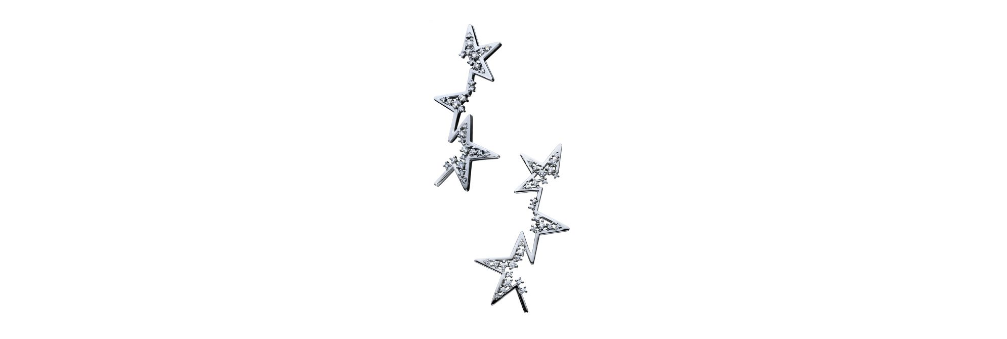 这款耳环以抽象前卫的设计勾勒出午夜星空,闪烁繁星与炫目铂金交相辉映,设计精美,堪称一件现代艺术品。