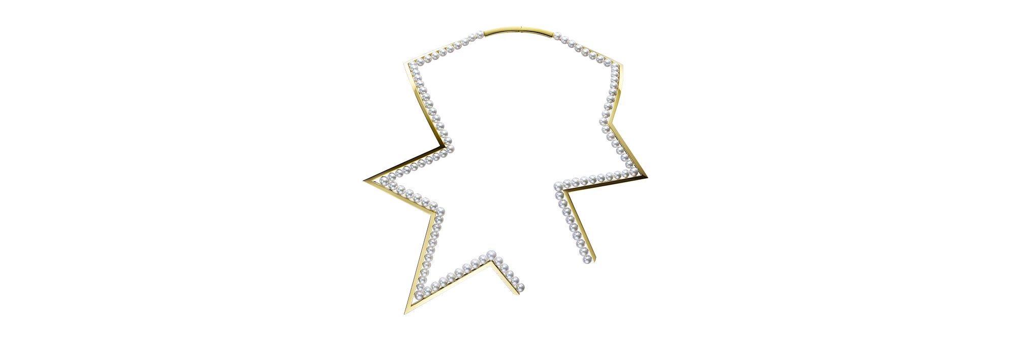 这款项链以抽象前卫的设计勾勒出午夜星空,堪称一件现代艺术品。107颗阿古屋珍珠精确地镶嵌于精心抛光过的黄金外框上,充满巧思的设计将TASAKI独有的精湛工艺演绎得淋漓尽致。
