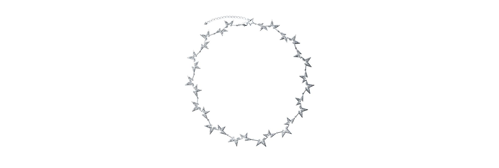 这款项链以抽象前卫的设计勾勒出午夜星空,闪烁繁星与炫目铂金交相辉映,耀眼的钻石仿佛悬浮于半空中,设计精美,堪称一件现代艺术品。
