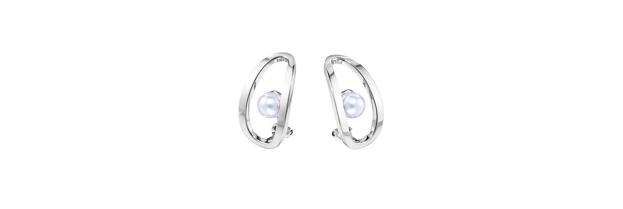 此系列宛若流光溢彩的水下极光,点亮了海底的神秘世界。这款耳夹以白金圆圈环拥阿古屋珍珠,风格优雅,又不乏时尚魅力。