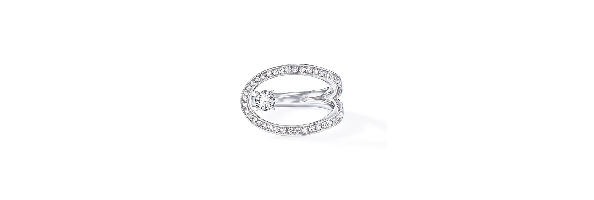 此系列令人联想起海底世界的梦幻光影,仿佛极光穿透海平面般变幻万千,耀目迷人。这款戒指饰有一颗宛若悬浮于正中的华美钻石,柔美弧线为指间增添璀璨光彩。