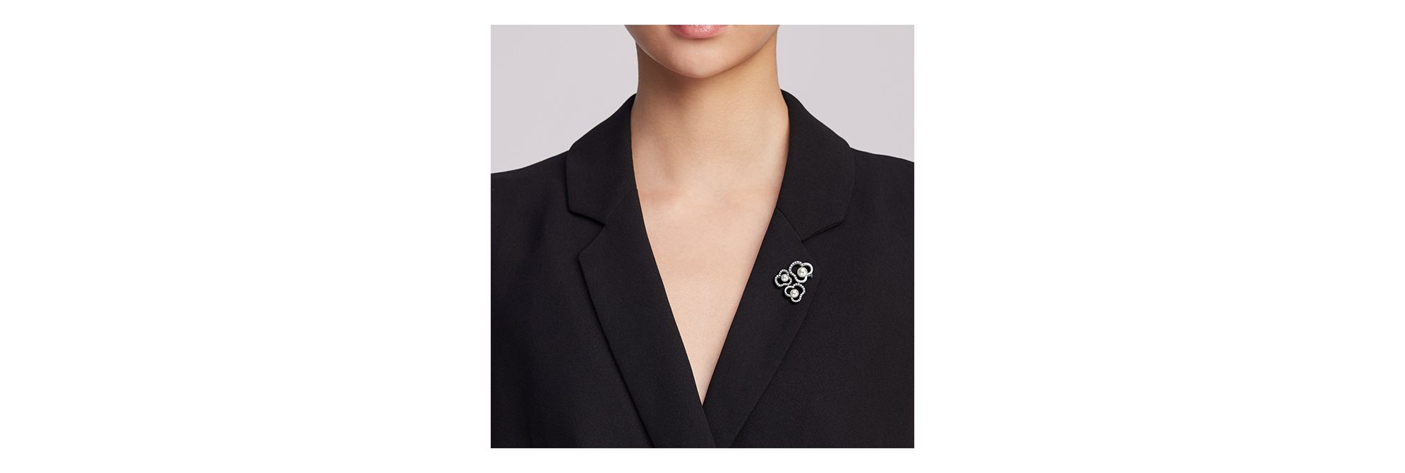 “chants diamond pavé”胸针将花卉造型化作隽永风尚,镶嵌璀璨钻石的花瓣与莹润的珍珠错落层叠,绽放恒久雅韵。设计灵动百搭却不失个性,可为任何造型轻松添上一抹雅致格调。