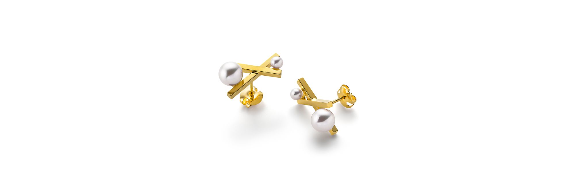 这款耳环的交叉杆以“balance”平衡系列的标志性黄金打造,并于两端点缀大小不一的阿古屋珍珠。精密计算出作品的平衡点,并运用技术巧妙创造出偏心X造型,更添时尚魅力。细赏之下,可发现暗藏其中密语,珍珠代表O,而黄金交叉杆代表X,寓意拥抱与亲吻。