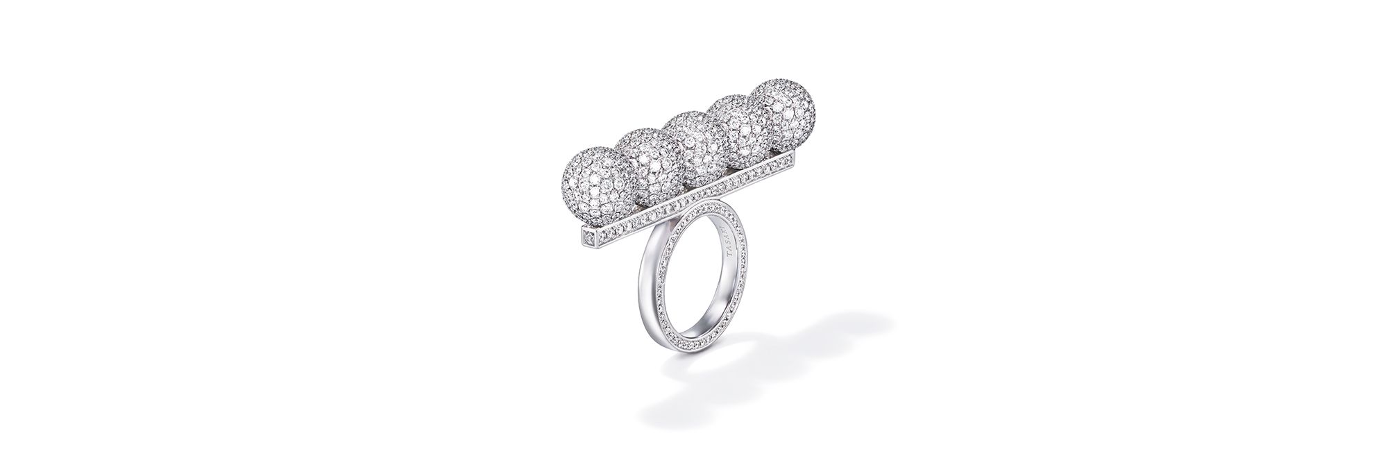 源于 balance signature 的经典设计,以细密镶嵌钻石呈现五颗珍珠排列于线条之上的造型,每一颗钻石的镶嵌都经过缜密计算,华丽精致,设计中透露出精妙现代设计之美。圆润饱满的钉镶钻球体现了 TASAKI 的卓越工艺,庆祝2020年迎来 balance 平衡系列十周年。