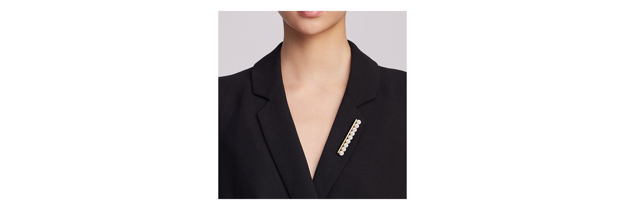 “balance signature”是TASAKI著名“balance”平衡系列的首款作品,以一整排珍珠为特色。“balance ikonic”系列以全新手法演绎经典作品,胸针上点缀了一排9颗阿古屋珍珠,线条简洁,奢华中流露出俐落感。