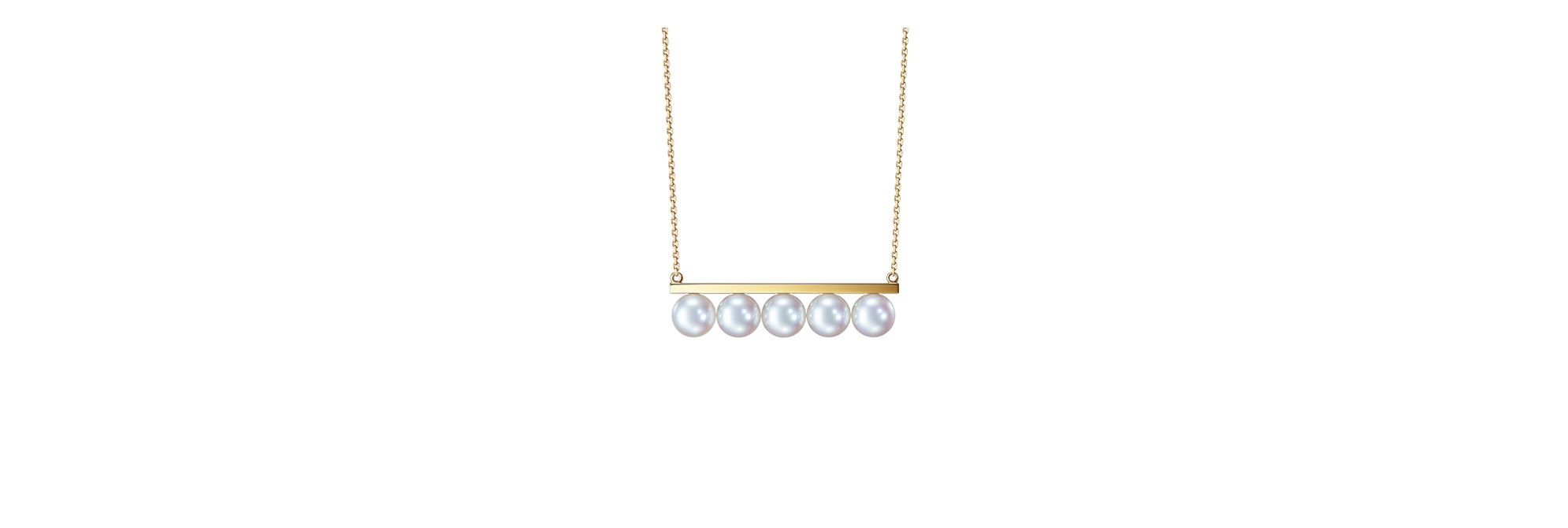 “balance”平衡系列颠覆了珍珠珠宝的传统概念,由此揭开该系列的华丽序幕。这款项链呈现五颗珍珠排列于黄金直杆上的别致设计,为颈间增添精致优雅气质。每颗精心养殖的阿古屋珍珠,均呈现相同的形状、大小、光泽、颜色和品质,将作品的出众魅力演绎得淋漓尽致。