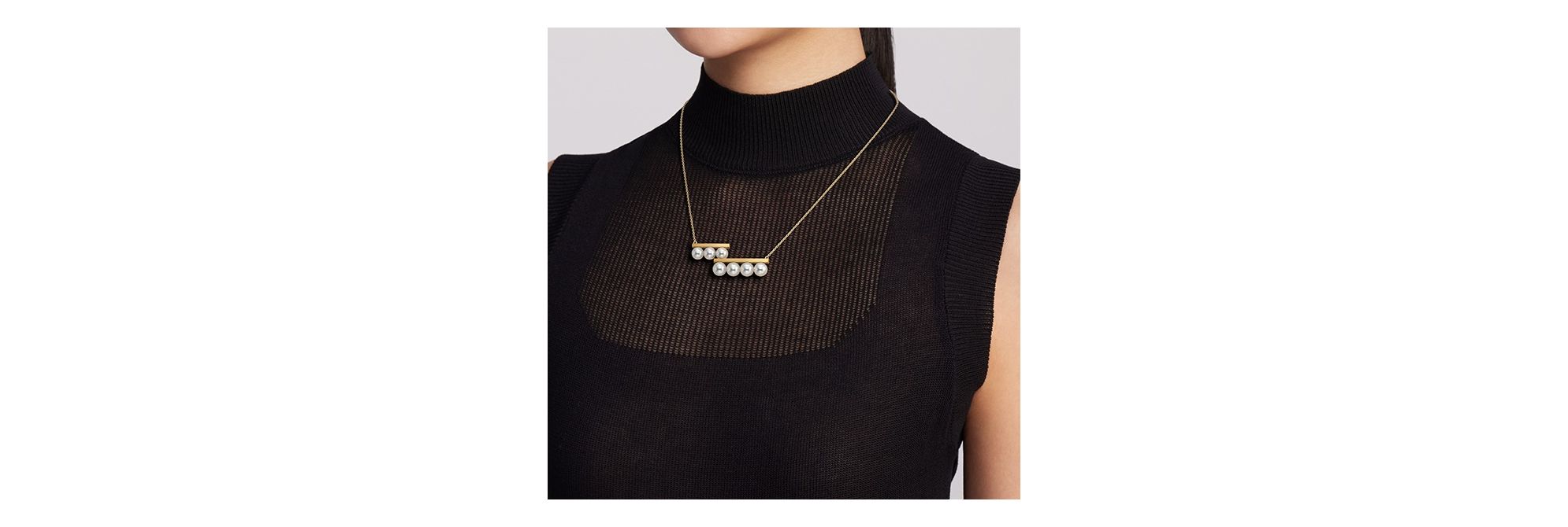 TASAKI经典的“balance”系列颠覆了大众对珍珠珠宝的传统印象,而“balance step”系列更将这一设计推向全新高度。七颗珍珠排列于两根高低错落的18K黄金平衡杆上,以不对称却充满平衡之感的设计为其特色。这款项链设计奢华精致,阿古屋珍珠的柔和光泽与18K黄金的低调光彩互相映衬,于颈间绽现光芒。