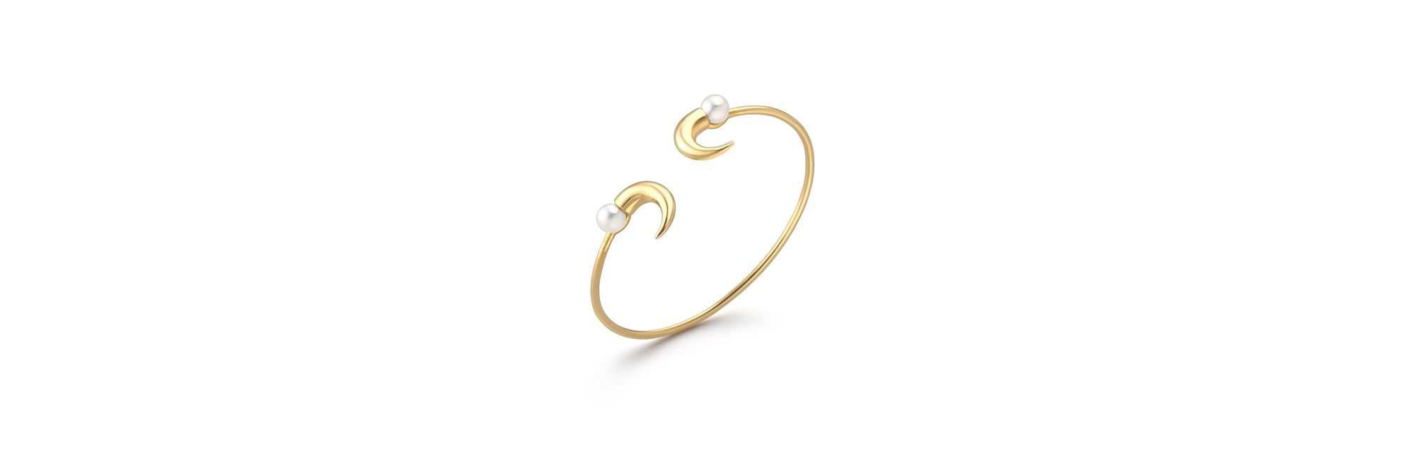 具有原始美感的牛角造型与莹润珍珠的创新融合,赋予这款手镯摩登魅力。TASAKI以匠心雕琢立体精致的曲线,为您的腕间增添优雅之气。手镯弧度贴合手腕,非常适合日常佩戴或与其他单品叠戴。