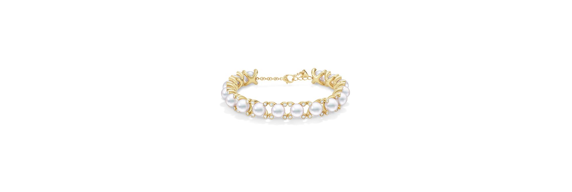 “prong”手链汲取爪镶工艺的隽永雅致,巧妙的设计使光线于不同角度自由流转,映耀出珍珠天成的莹润光华。每一颗珍珠皆由 18K黄金爪镶轻柔环抱,爪尖点缀细腻微钻,柔和的华彩为设计收尾点睛。