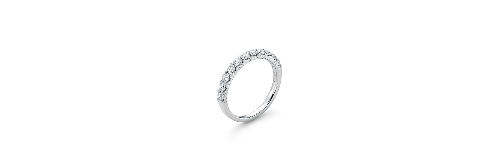 “BRILLANTE”系列名称来自意大利语的“璀璨”。这款戒指的戒圈密镶钻石,正如同其系列名一般绽放璀璨光芒。这款简约的半圈镶钻戒指可与多款戒指混搭佩戴。