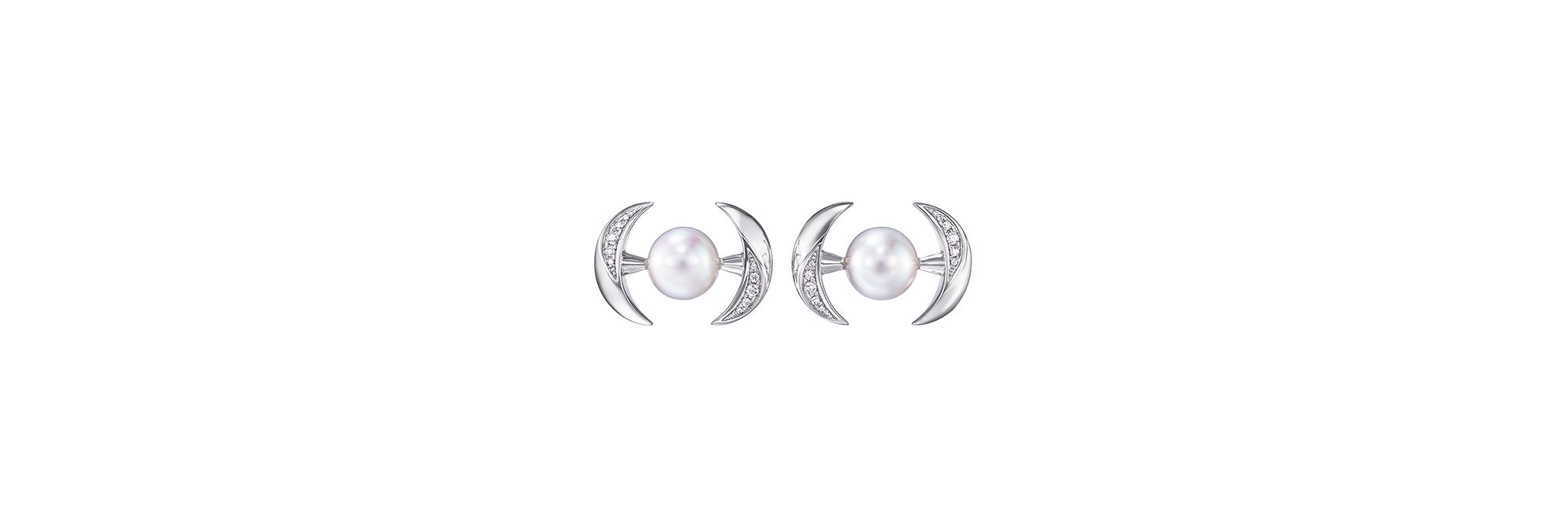 这款耳环以珍珠诠释漂浮于平静海面上的浮标,令人浮想联翩。白金上点缀不对称的密镶钻石,环拥珍珠,撷璀璨光辉渲染迷人耳畔。