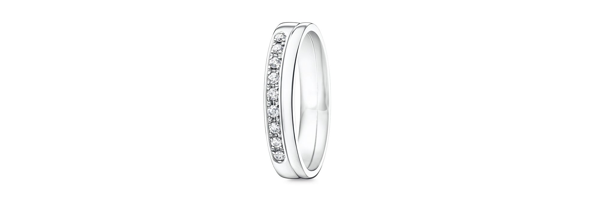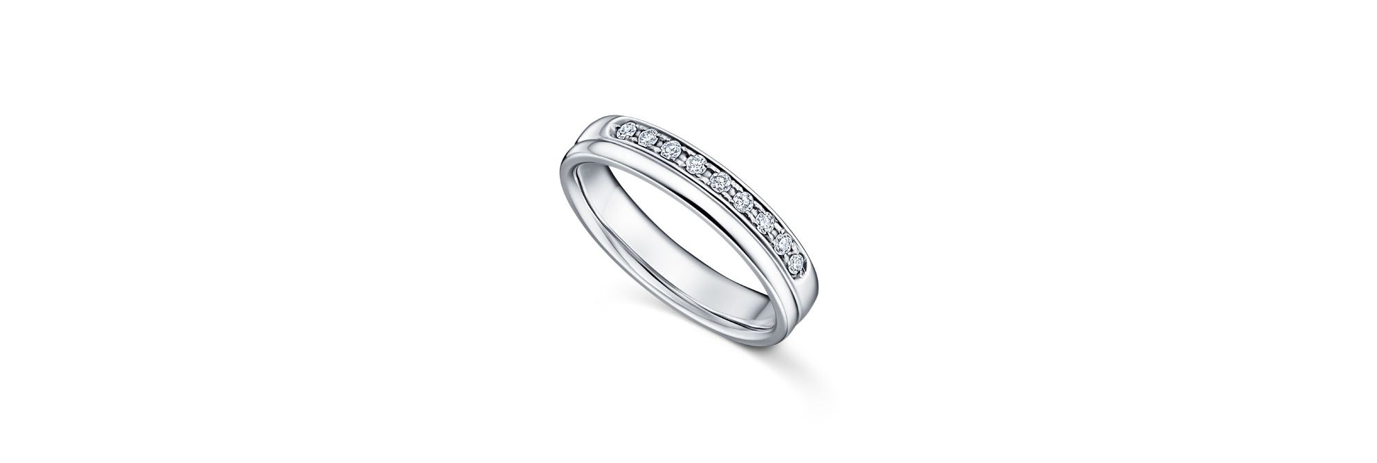 这款来自TASAKI “CHIARO”系列的婚戒刻画踏入生命新篇章的希冀,洋溢着真挚情感。这款优雅的双圈婚戒彰显静水流深般的纯粹爱情。整排密镶钻石与纯澈的戒圈以精美的对比,呈现动人心弦的设计。