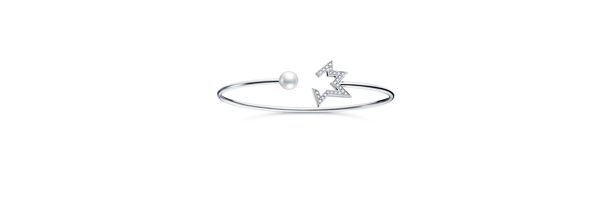 TASAKI “comet plus”系列珠宝勾勒彗星掠过夜空的景象,饶富趣味。温婉淡雅的阿古屋珍珠彗星与闪烁耀眼的钻石彗尾交相辉映,尽显这款手镯的华丽美感。莹润的珍珠与璀璨的钻石形成对比,美不胜收。