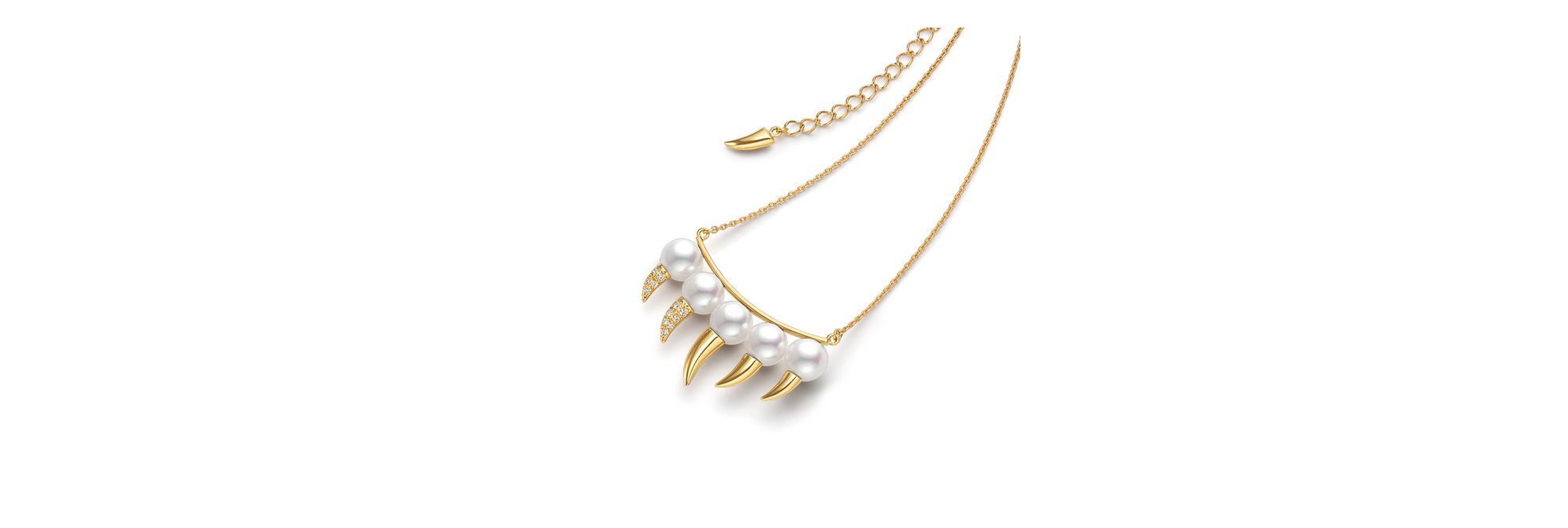 TASAKI “danger fang”项链定格食肉植物利齿非同寻常的美感。这件作品以黄金打造栩栩如生的利齿,其中两枚更饰有密镶钻石,绽放低调光芒。