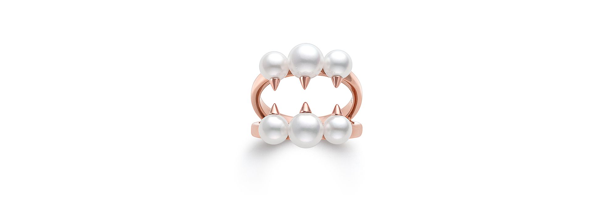 TASAKI “danger signature”系列属于TASAKI经典“danger”作品系列,其灵感源自食肉植物暗藏的危险与魅力。这款设计大胆的戒指定格食虫植物的捕猎时刻,在光泽的小珍珠上露出张牙舞爪的黄金尖刺。TASAKI原创樱花金温柔映衬肌肤。