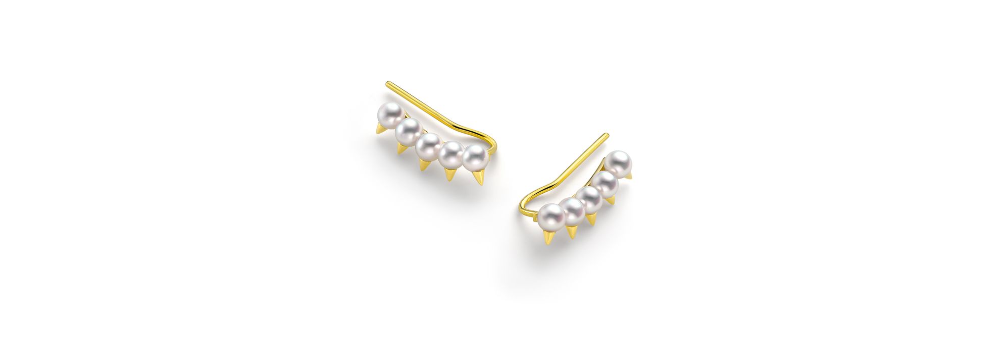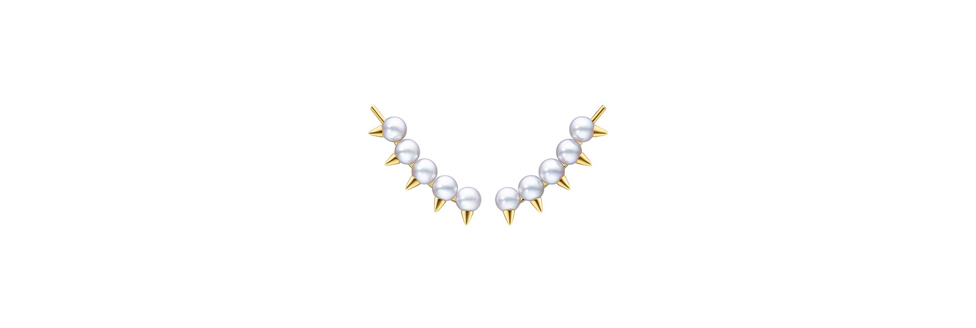 “danger plus”系列以锐利的荆棘轮廓、黄金的婀娜曲线与珍珠的圆润造型形成巧妙对比,展现高雅精致的风格。这款黄金耳环造型以植物自然的线条,贴合耳垂轮廓,更显珠宝灵动生机之美