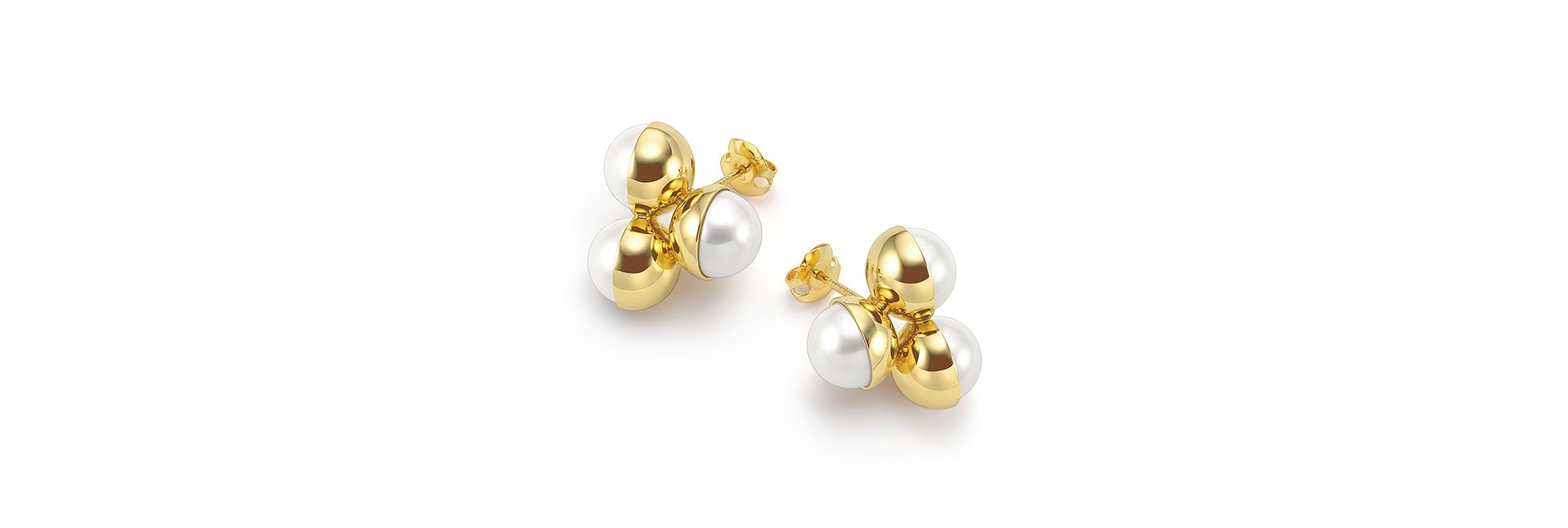 “ARLEQUIN SLASHED”巧妙交融温润珍珠与闪耀黄金,打造交替排列的图案设计,营造出珍珠不断旋转的视觉美感。此款耳钉以三颗瞩目珍珠构建几何感排列,打造摩登造型,璀璨夺目而不失精致美感。亦可对调佩戴。