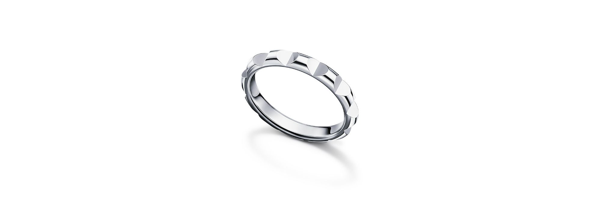 TASAKI “ECLISSE”系列珠宝以月相盈亏寓意幸福时光。这款婚戒外圈以半月形状为点缀,稍微倾斜便如同一颗颗爱心,散发隽永魅力。 备注:本品不提供尺寸修改服务。