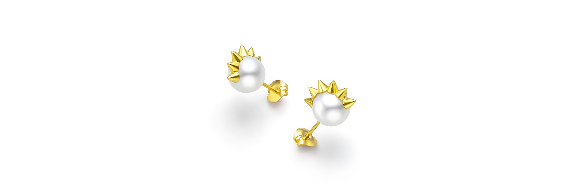 “danger spike”系列作品以利齿镶饰南洋白珍珠,设计前卫时尚。闪耀的18K黄金利齿,可以巧妙捕捉多角度光线,突显珍珠的莹润光泽。点缀耳畔,增添时尚前卫的气息。