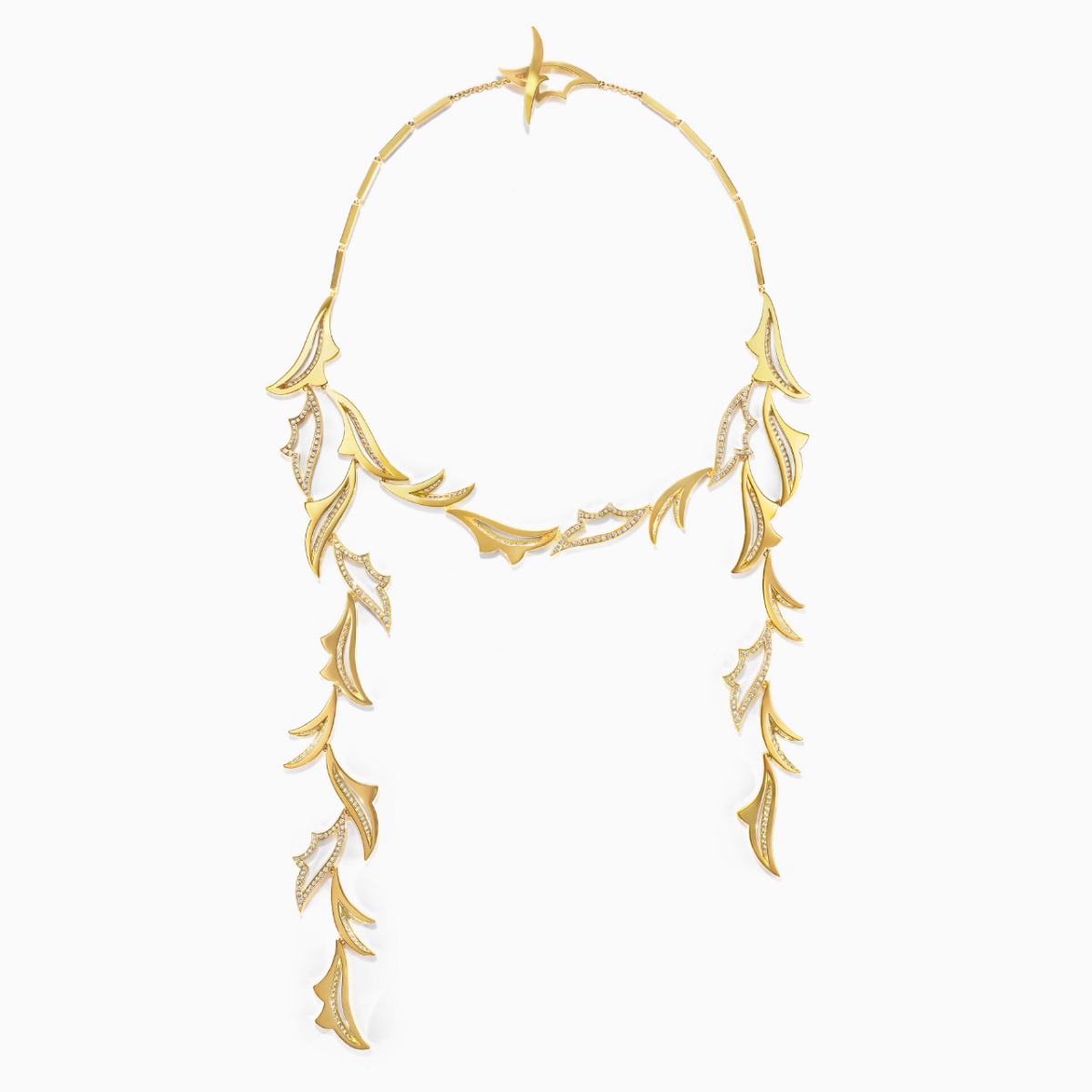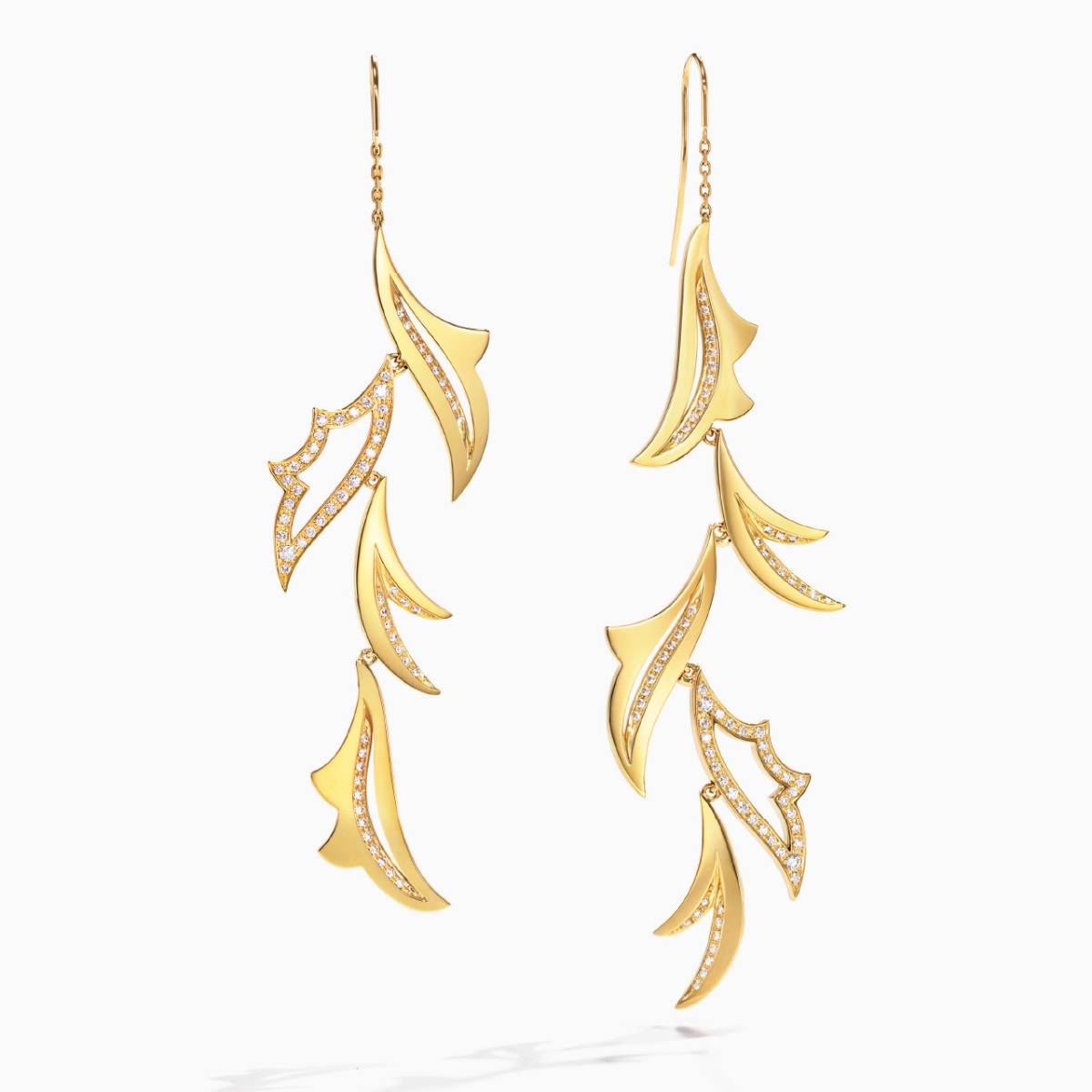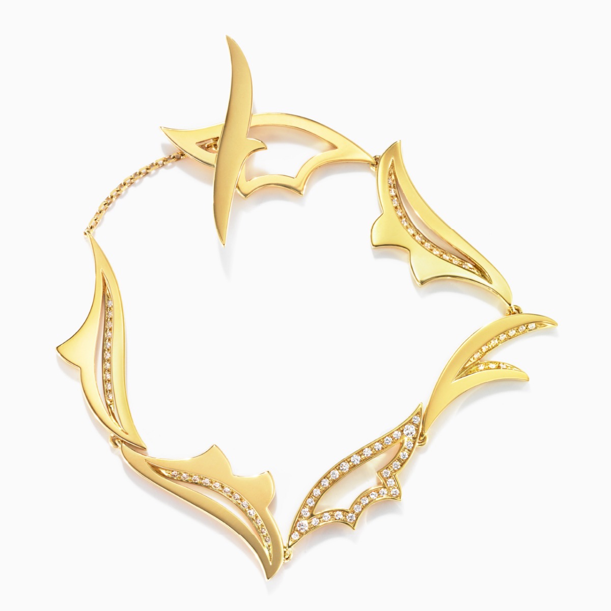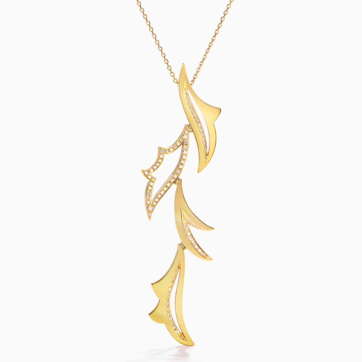 ‘Jardin Secret’ 系列包含了项链、吊坠、耳环、手镯和戒指。18K黄金和钻石的运用让植物的纹路展现了一种自然且富有韵律的美丽。