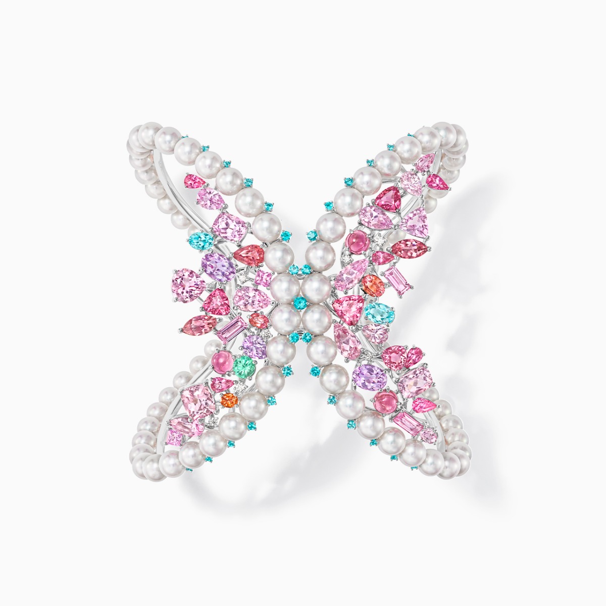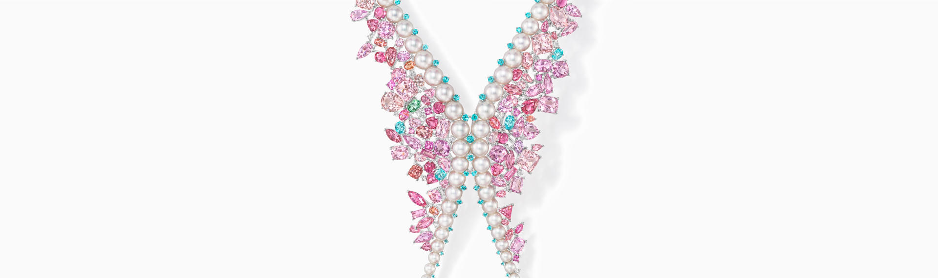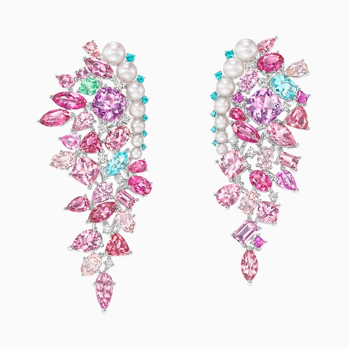 18K白金 / 阿古屋珍珠 / 钻石 / 摩根石 / 彩色蓝宝石 / 粉色碧玺 / 帕拉伊巴碧玺 / 托帕石 / 尖晶石