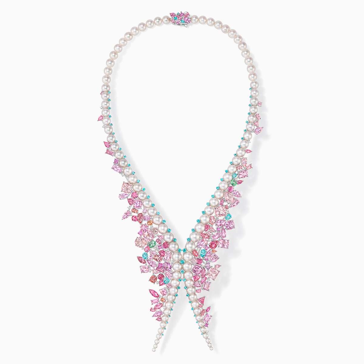 18K白金 / 阿古屋珍珠 / 钻石 / 摩根石 / 彩色蓝宝石 / 粉色碧玺 / 尖晶石 / 帕拉伊巴碧玺 / 托帕石