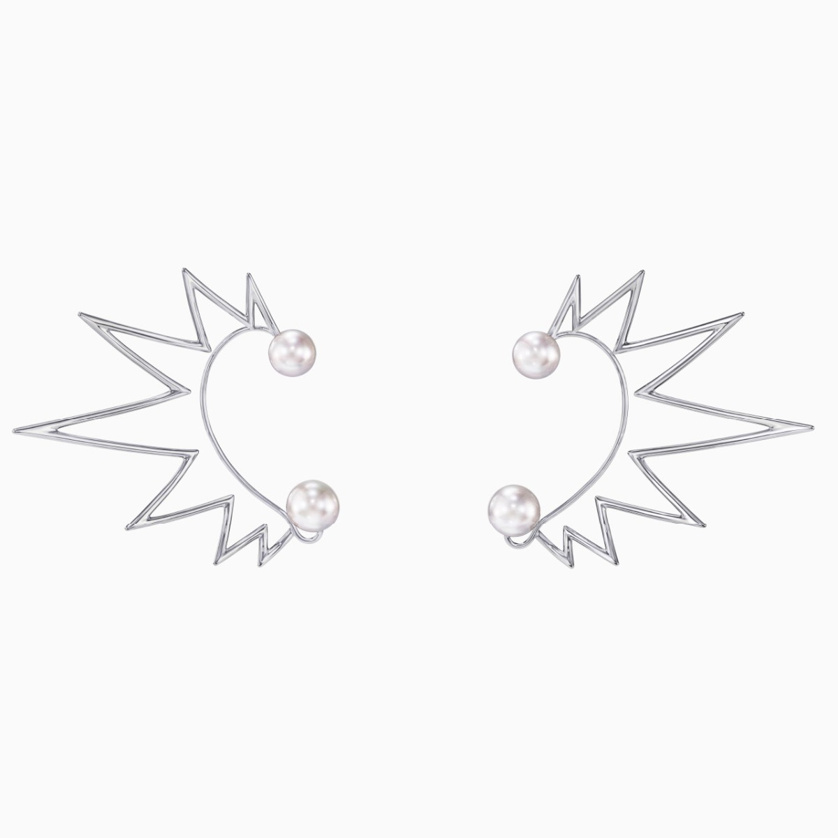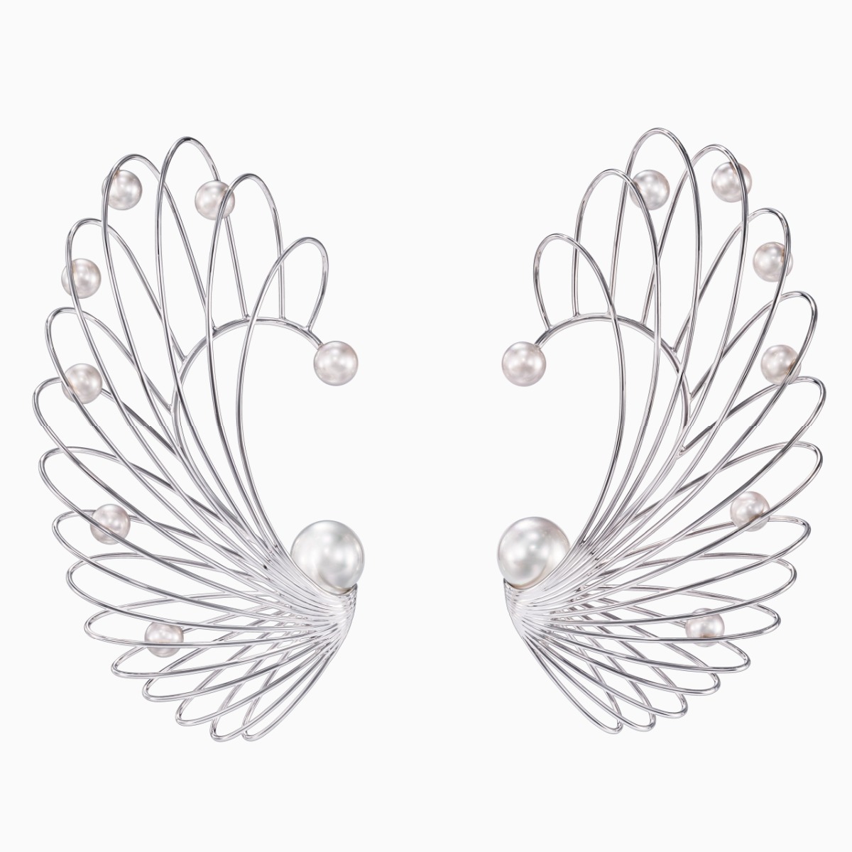 “Nacreous”系列凝聚珍珠母贝的魅力精髓。此系列夺目的线条设计灵动脱俗,令人心驰神往。这款全耳式耳环饰有18K白金扇形装饰,张扬地向外延展,以抽象造型表现孕育珍珠的贝壳。每只耳环镶嵌有两颗珍珠,一颗位于耳垂附近,另一颗位于耳朵上方。