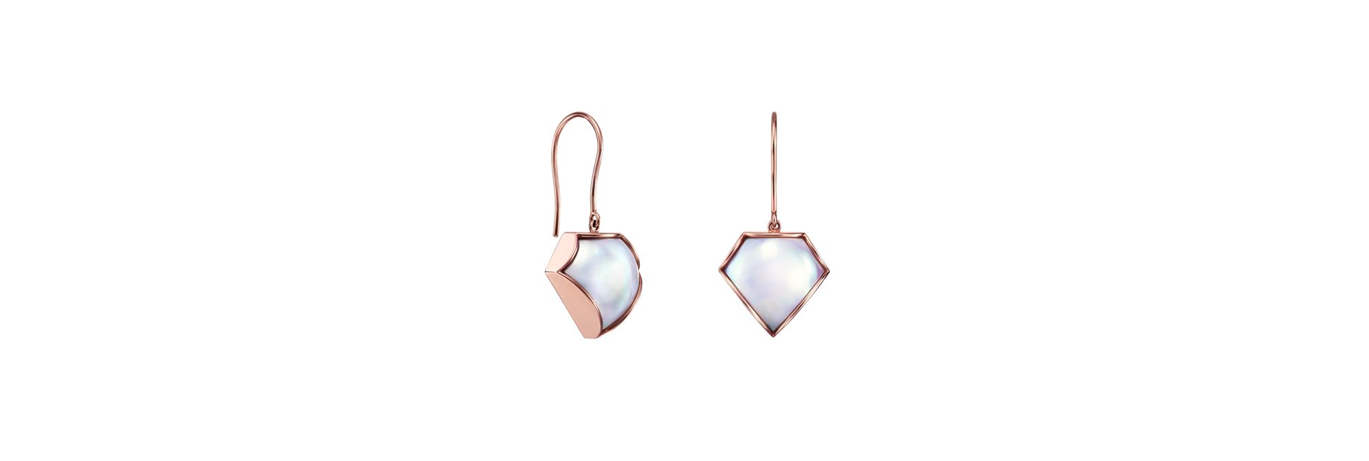 TASAKI “FACETED”系列珠宝将马贝珍珠镶嵌于樱花金框架中,勾勒钻石形态,呈现极简设计。这款耳环以珍珠和钻石图案象征恒久爱意。利落的正面造型与柔美的侧面造型形成鲜明对比。