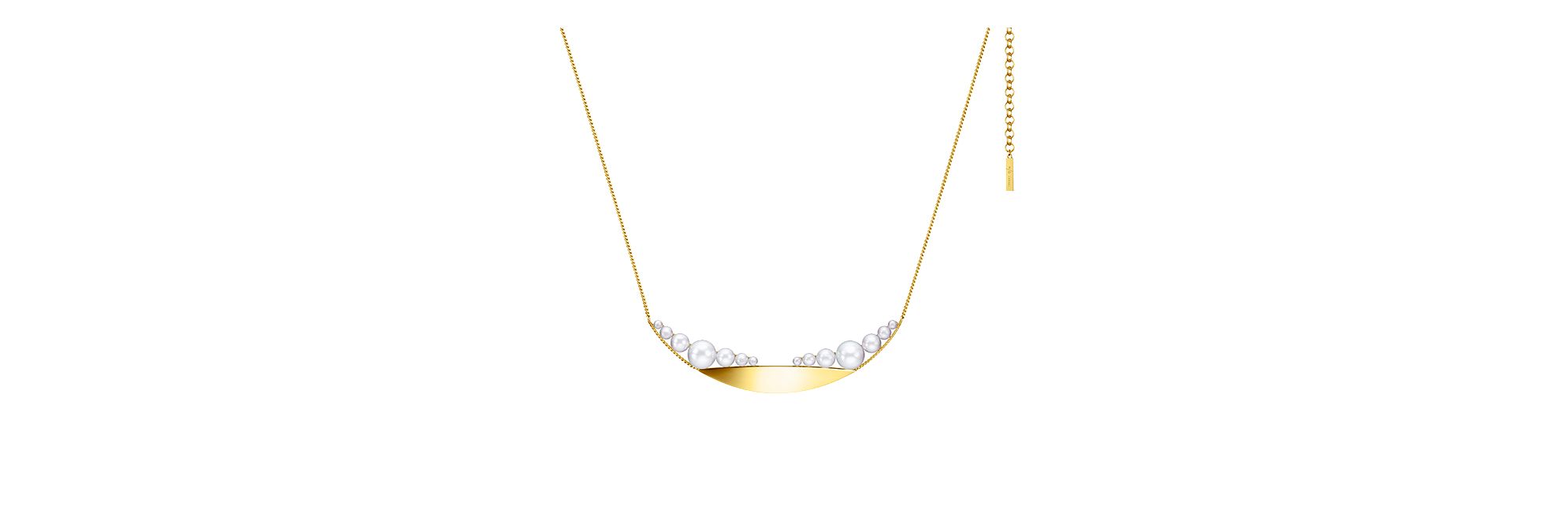 这款充满现代感的系列作品以18K黄金搭配创意排列的珍珠,优雅勾绘展翅翱翔的飞鸟。这款项链的设计时尚且充满创意,于颈间展现个性风采。
