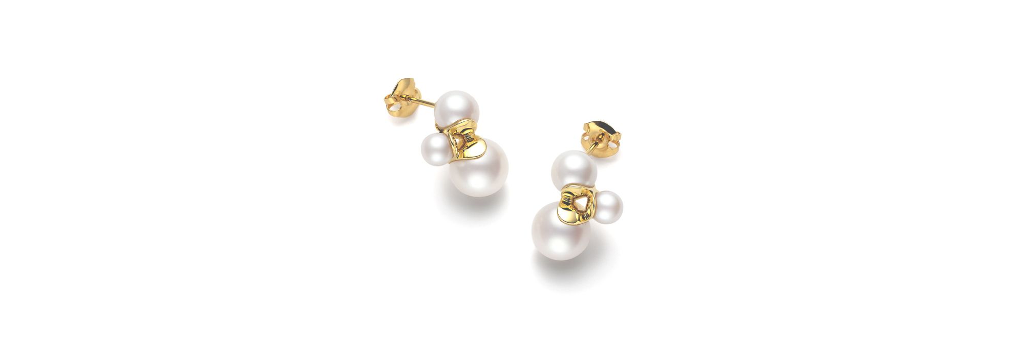 这款耳环以黄金承托大小不一的珍珠,视觉上仿佛受黄金球所吸引的设计饶富趣味。