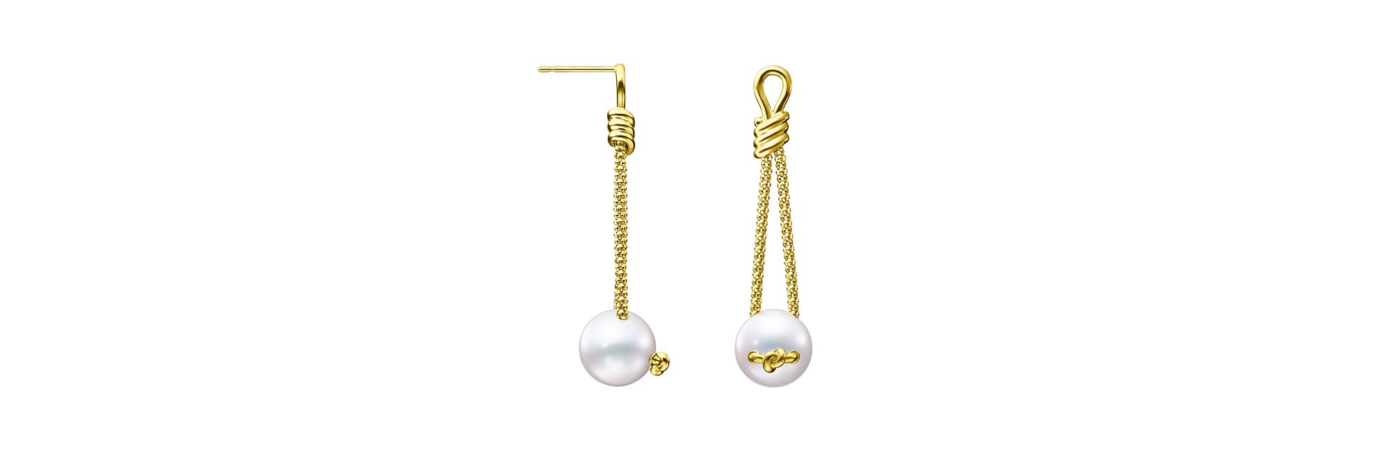TASAKI “KNOT”系列珠宝以时尚风格演绎传统绳结,再现英国维多利亚时期备受欢迎的爱情象征。这款优雅摇曳的耳环以18K黄金铸就优雅线绳,并于末端“系结”珍珠。