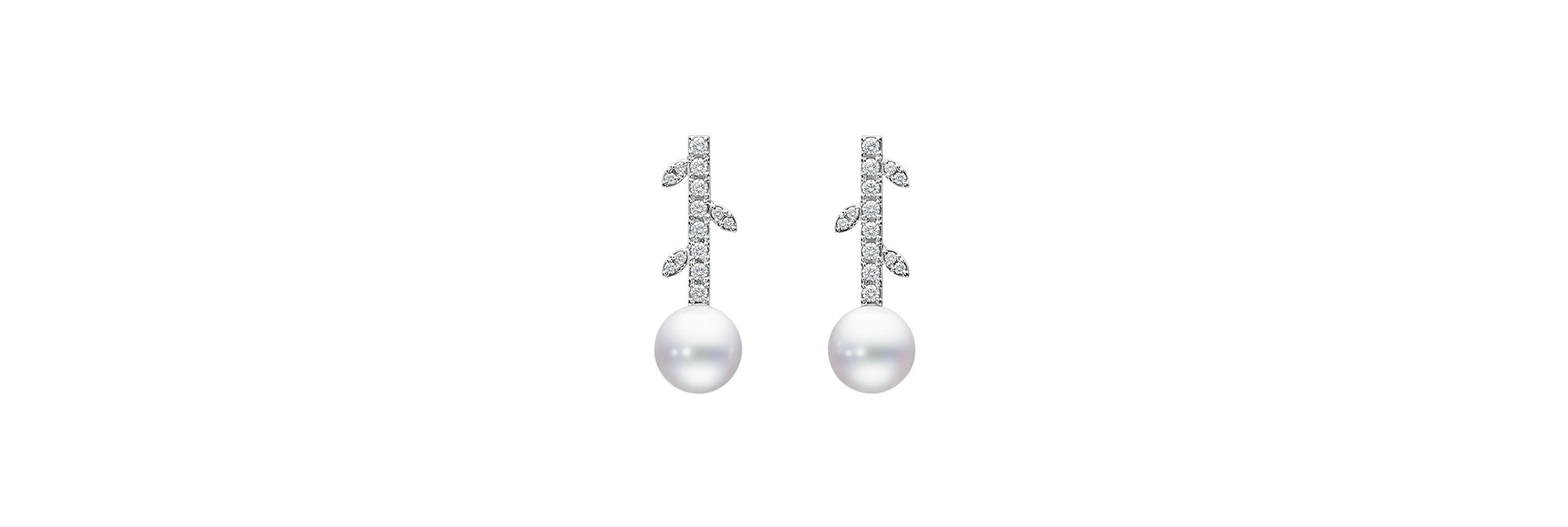 这款白金耳环以圣诞树的缤纷装饰为灵感 鉴于装饰是以苹果为原型,该系列创意亦融入果叶为设计元素 夺目的白色南洋珍珠与钻石交相辉映,渲染出浓烈的节日气氛。