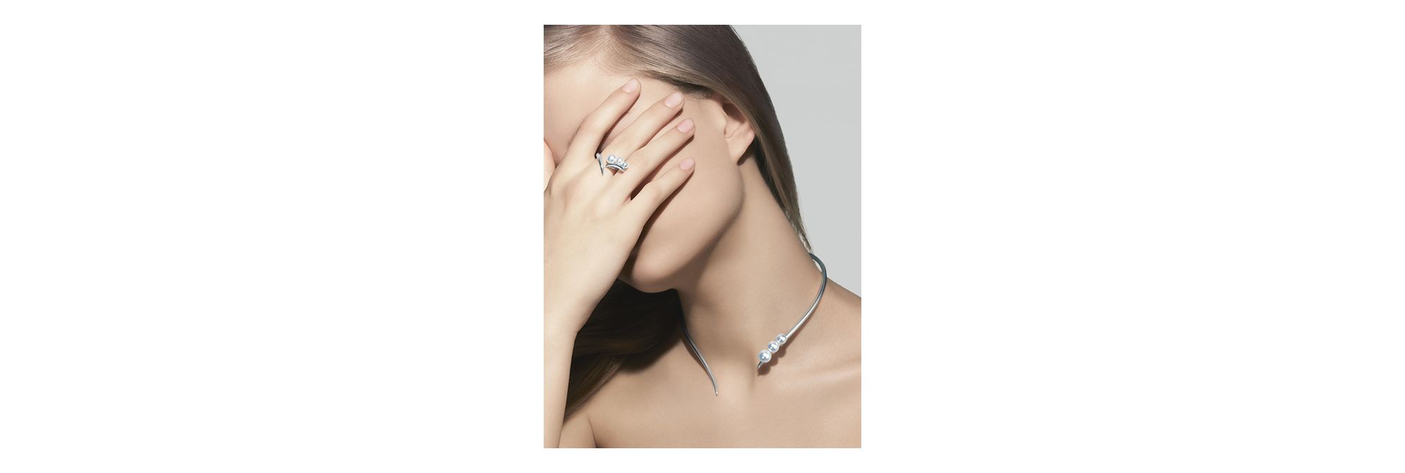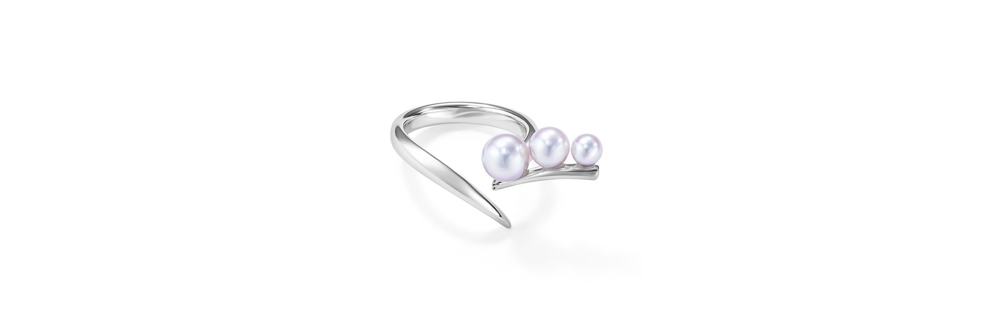 “Moulin”系列珠宝凝聚空灵且通透的光芒,穿透淹没于岩石海湾阴翳中的洞穴。这款戒指以渐变排列的阿古屋珍珠点缀于莹亮的白金线条之上,散发端庄典雅的迷人光泽。