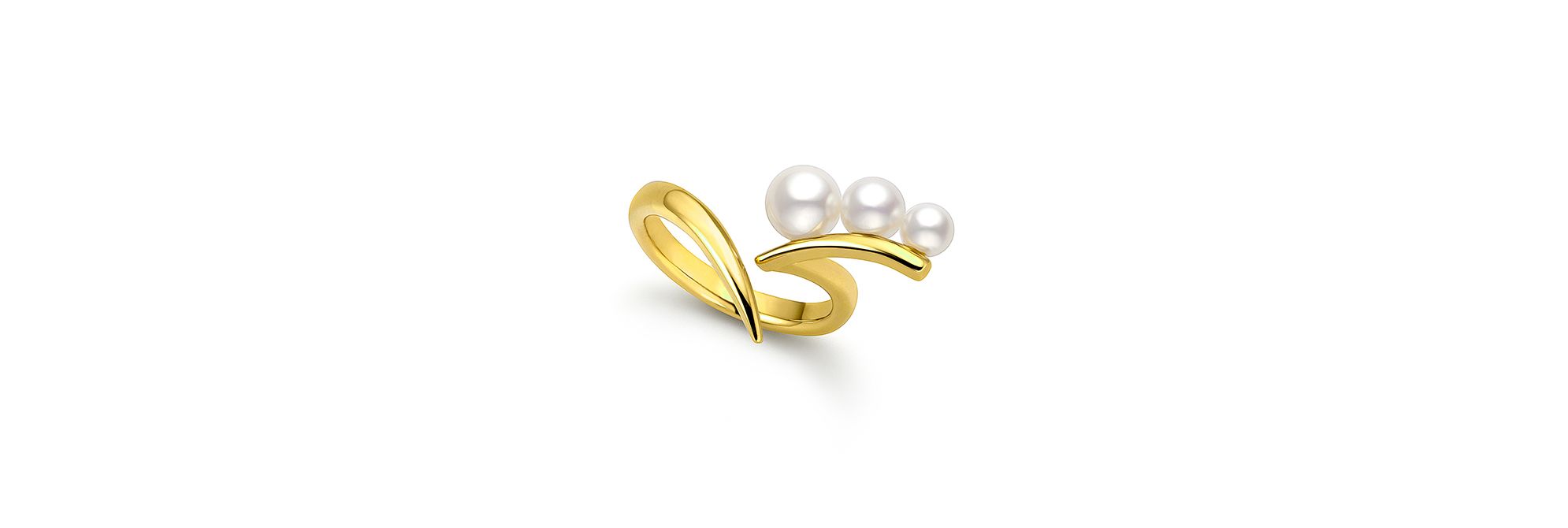 “Moulin”系列珠宝凝聚空灵且通透的光芒,穿透淹没于岩石海湾阴翳中的洞穴。这款戒指以渐变排列的阿古屋珍珠点缀于莹亮的黄金线条之上,散发端庄典雅的迷人光泽。