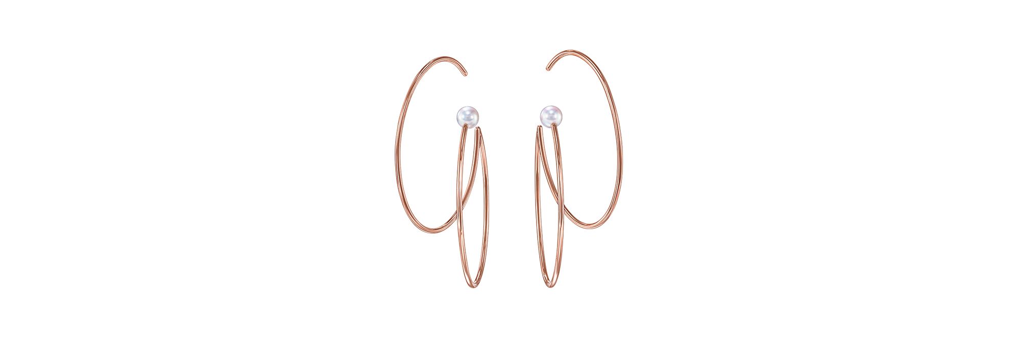 “Nacreous”系列珠宝凝聚了天然珍珠母贝精粹。这款耳环的樱花金环圈从耳后环绕,营造穿过耳屏的错视效果,极具创意。