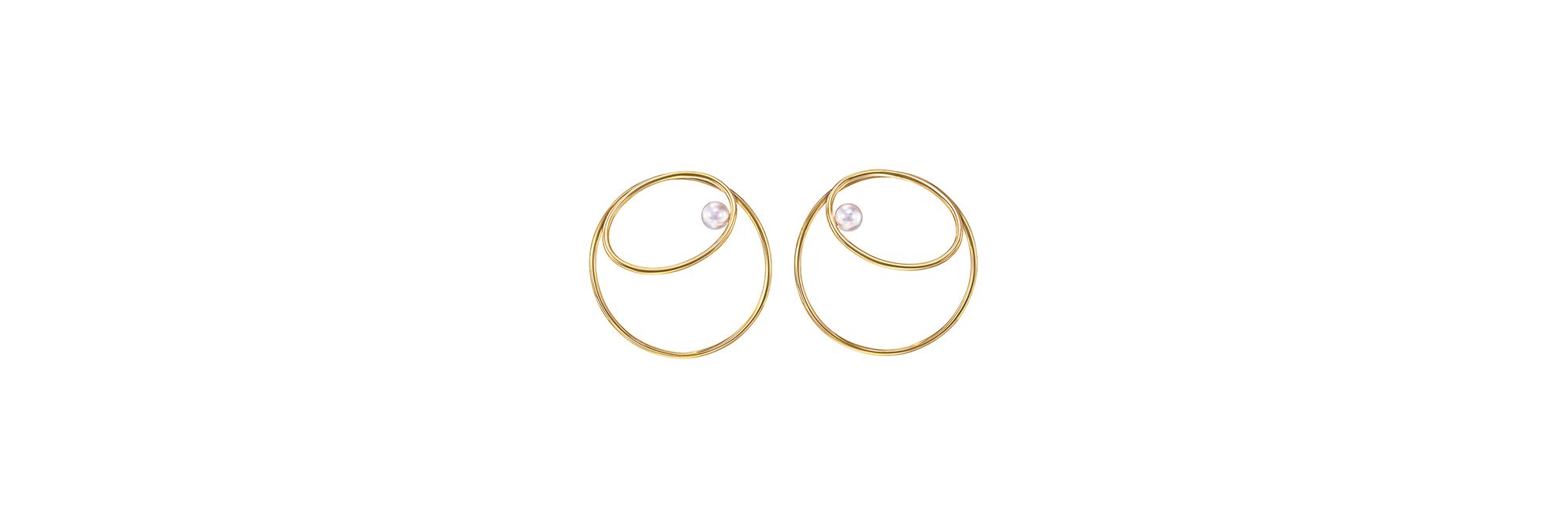 “Nacreous”系列珠宝从珍珠母贝皮层下的虹彩色泽中汲取灵感。精美圆环与椭圆形环圈相结,形成夹角,大小不一的阿古屋珍珠栖缀其上,呈现出珍珠在贝壳中生长的景象,悬浮于耳畔。
