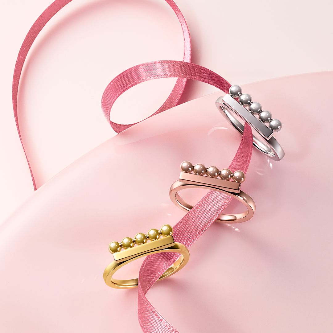 TASAKI以平衡唤醒春日盎然,TASAKI Metal Jewellery鎏金系列用18K黄金、白金及浪漫樱花金勾勒爱的瞬间。TASAKI balance shape signature戒指将五颗精准排列的金质圆球平衡串联于金质直杆之上,于指间汇成一道迷人光辉。TASAKI balance shape neo戒指以精致小巧的三珠设计打造轻盈感,以悬浮美学扩写时髦风范。