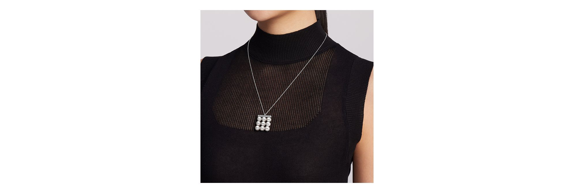 这款项链采用致趣十足的设计,颗颗珍珠沿镶嵌璀璨钻石的金质直杆排列成行,宛如积木精巧排布。摩登设计彰显沉稳优雅之气,尺寸适合日常佩戴,为您的颈间增添摩登雅致之美。