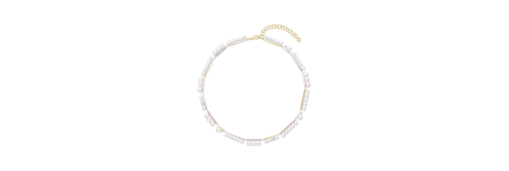 该款项链匠心融汇了 TASAKI 标志性的“balance”系列的六大经典设计,诚意致敬品牌成立 70 周年。TASAKI引以为傲的珍珠与钻石两大元素精心镶嵌在三种金属直杆之上,以奢华光芒点亮美好时光。