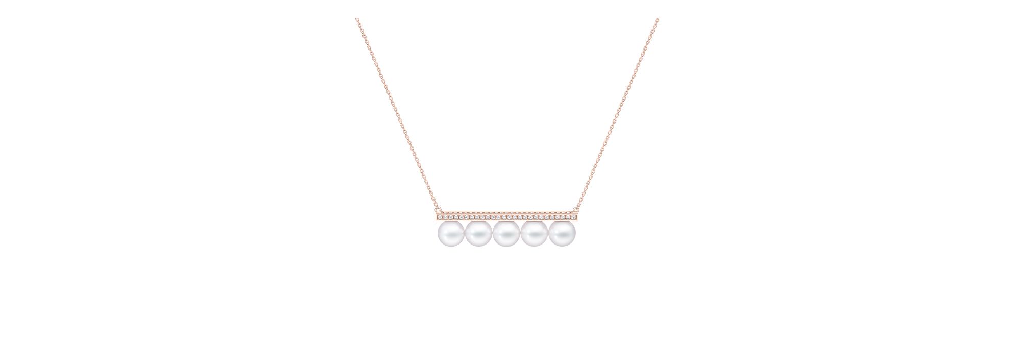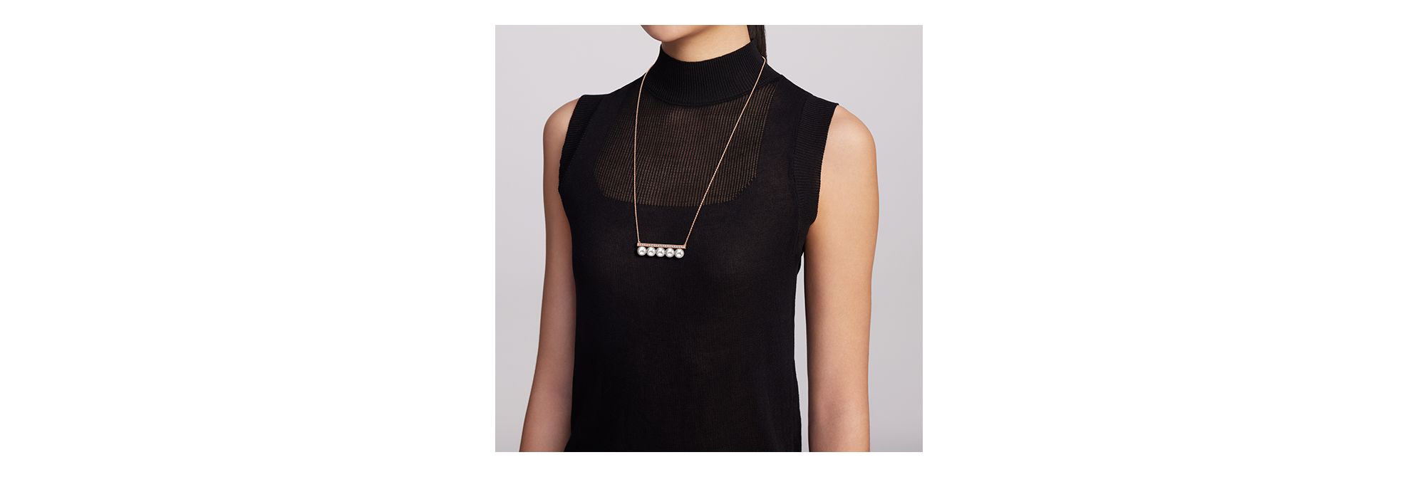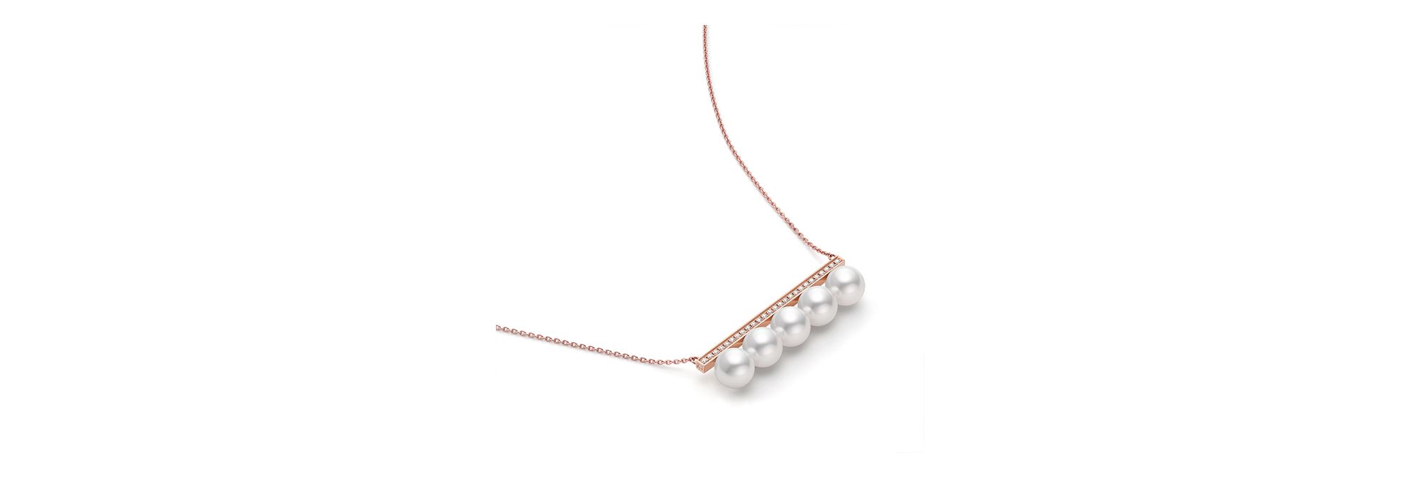 为纪念TASAKI塔思琦70周年诞辰,特别呈现“balance signature”项链。5颗阿古屋珍珠整齐排列在樱花金直杆之上,优雅的樱花金与璀璨钻石、莹润珍珠的光芒相得益彰,令肌肤更显光彩照人。