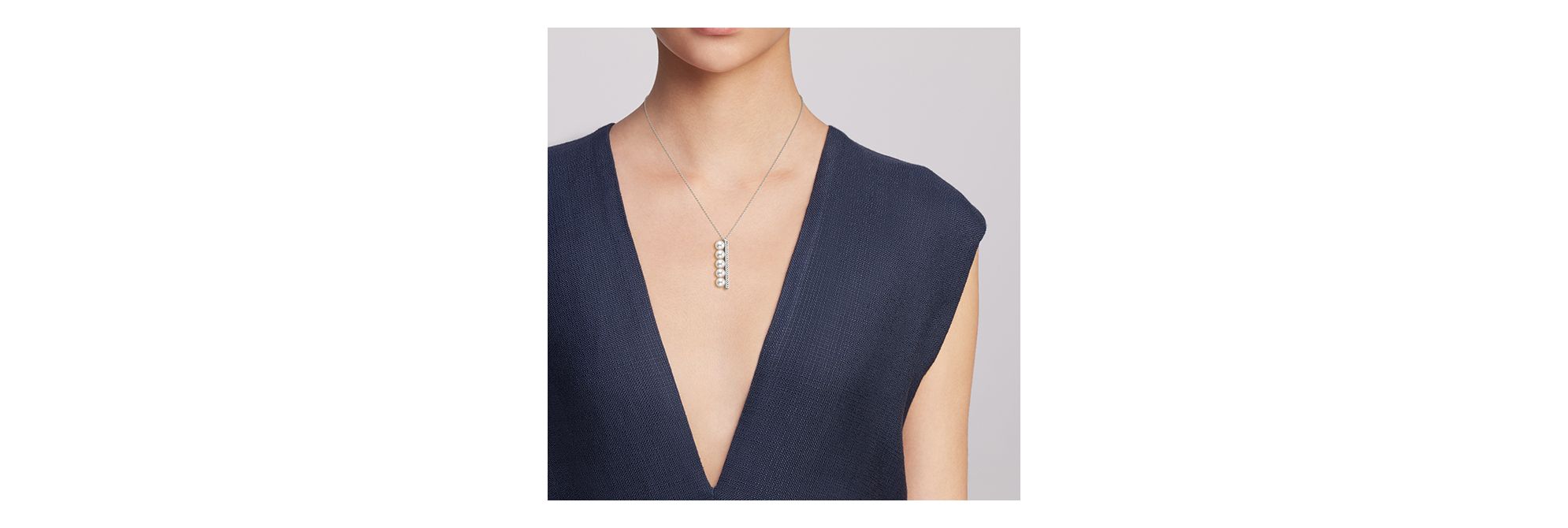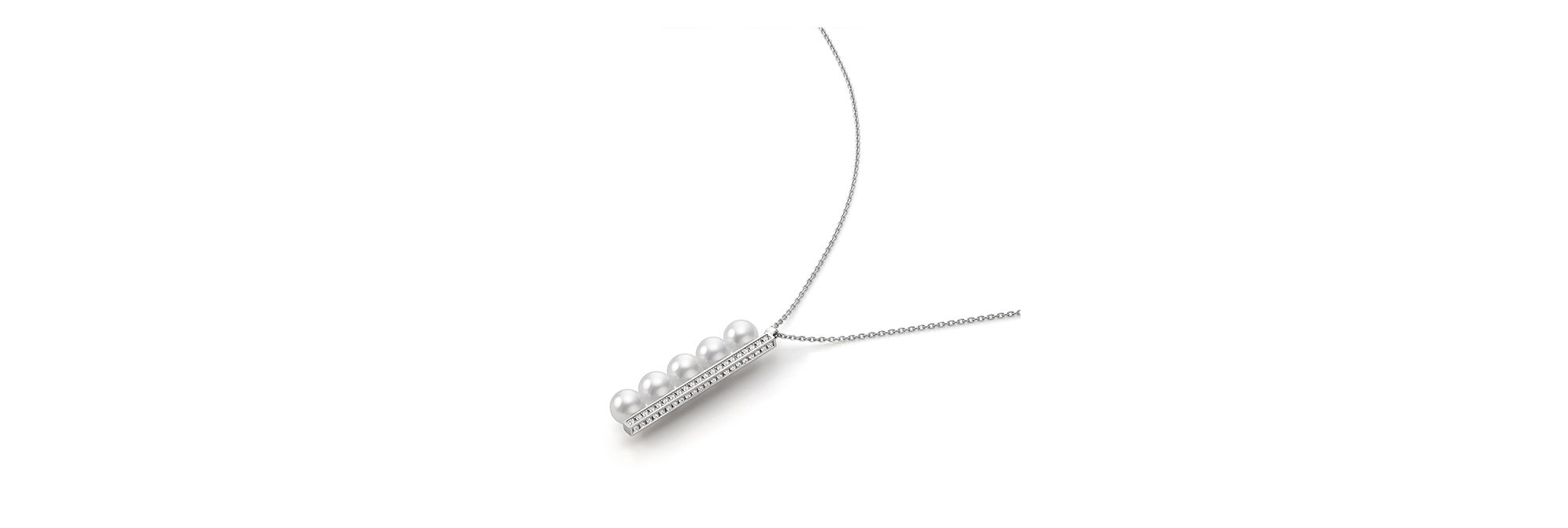 这款“balance“项链将5颗阿古屋珍珠竖向排列在18K白金直杆之上,新颖设计营造出不同以往的摩登平衡之美,为颈间平添优雅奢华魅力。