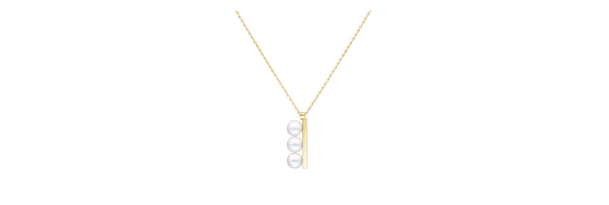 这款“balance plus neo“项链将三颗阿古屋珍珠纵向排列在18K黄金金属直杆之上,简约俏皮的设计营造珍珠在颈畔漂浮之感。可与同系列的戒指成套搭配更衬优雅之姿。