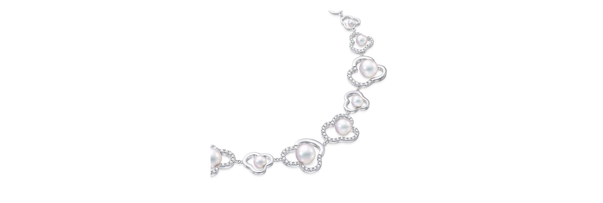 “chants diamond pavé”项链优雅地将三种尺寸的花朵轮廓错落相连,每一朵花都精心点缀着密镶钻石,再以一枚单颗珍珠温柔点亮。柔美的 18K白金线条流转光影,散发细腻光辉,设计隽永典雅,亦蕴含摩登格调。