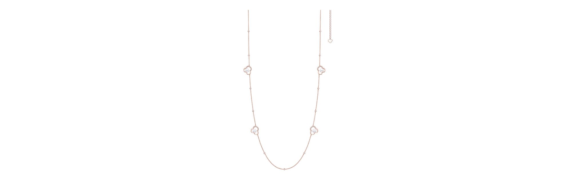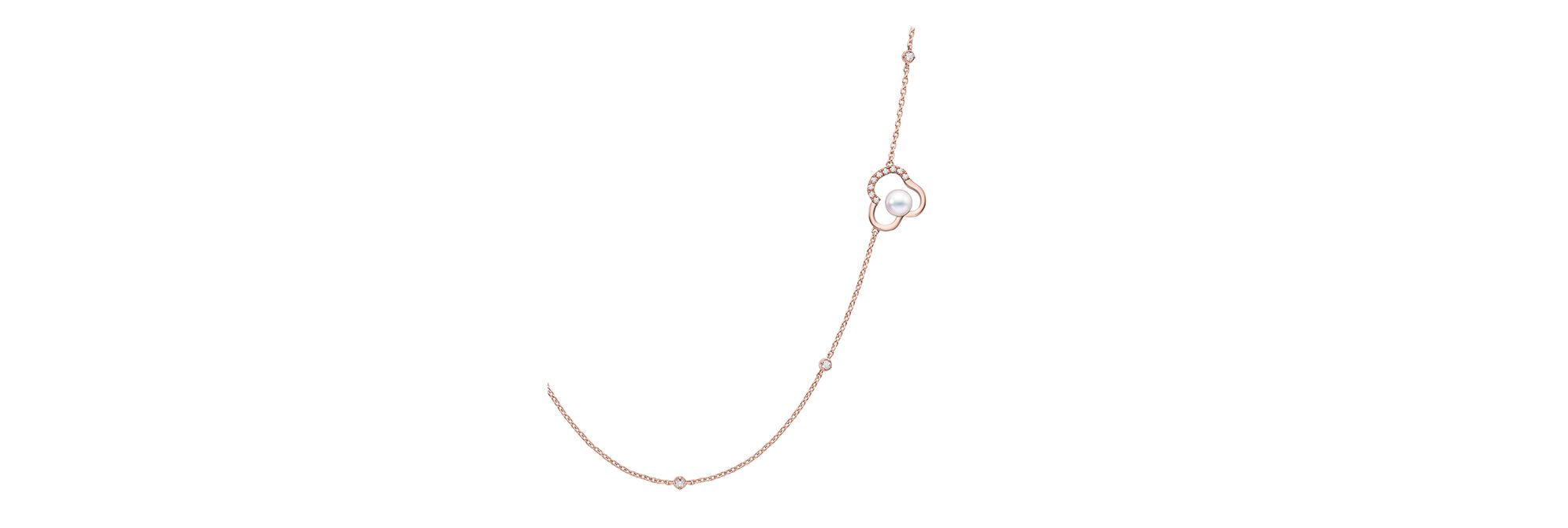 “chants signature”项链采用饰有密镶钻石元素的樱花金细腻勾勒花朵意象,沿链点缀,轻盈铺展,奠定整件作品的柔美基调。珍珠点缀的花朵与钻石元素交替相间,整体设计流畅有序,展现恬静节奏与隽永魅力。