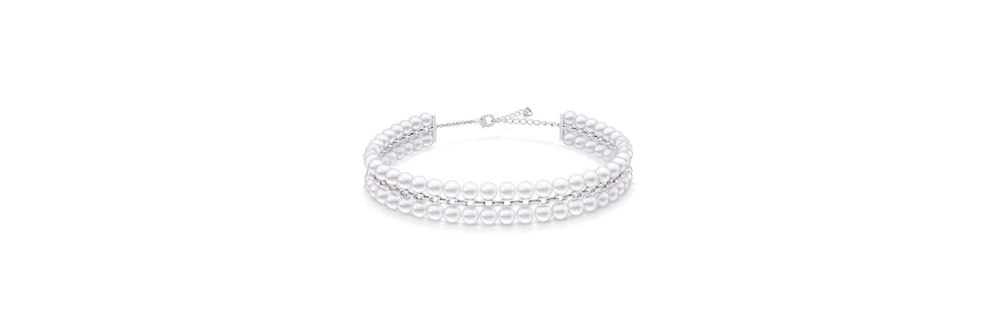 “sequence diamonds”颈圈以简洁的矩形链节串联圆融莹润的珍珠,在不经意间展现不凡品位与俊雅格调。精致闪耀的 18K白金镶嵌长方形切割钻石,于颈间散发柔和而雅致的光辉。