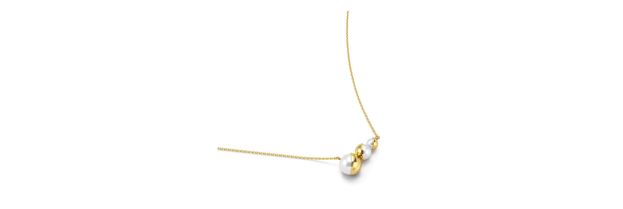 “ARLEQUIN SLASHED”巧妙交融温润珍珠与闪耀黄金,打造交替排列的图案设计,营造出珍珠不断旋转的视觉美感。此款项链运用大小不一的三颗珍珠,巧妙呈对角线排列,为颈间增添一抹韵律色彩。