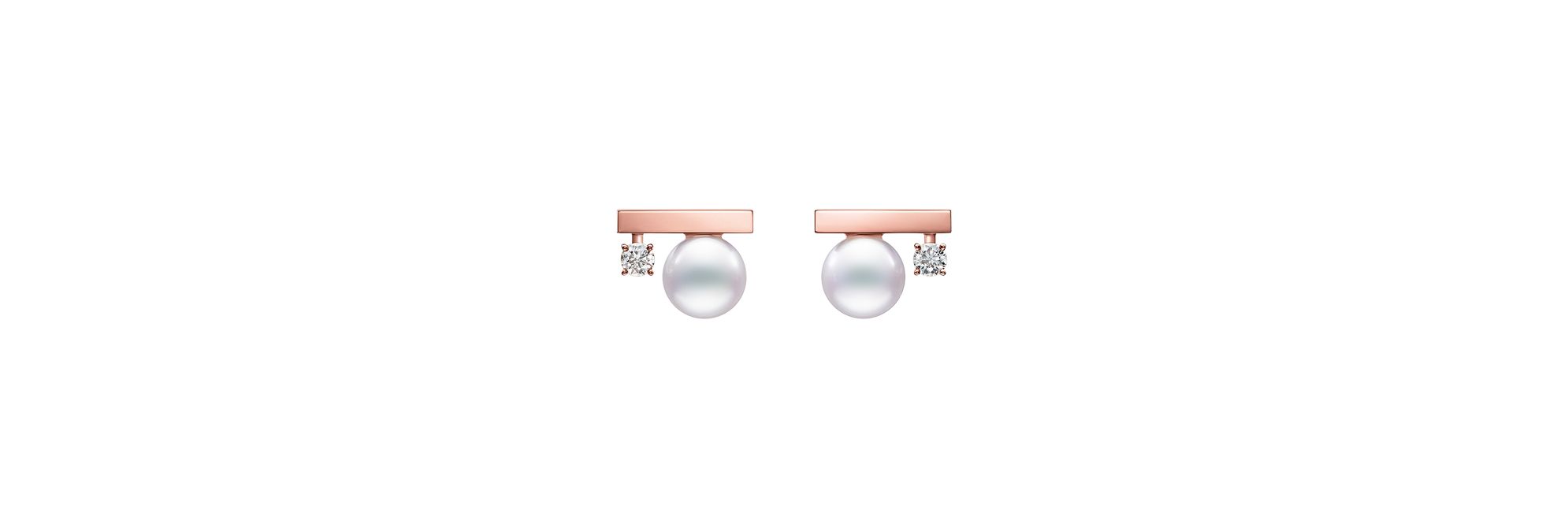 这款优雅的耳环以单颗阿古屋珍珠和单颗钻石点缀于樱花金直杆上,外形纤巧,风格可爱,洋溢着优雅气息与动人光芒。