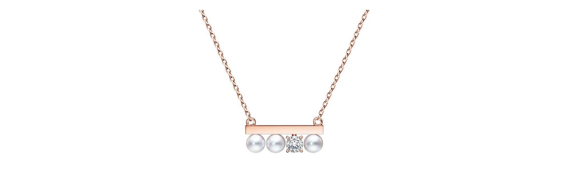 这是TASAKI “balance diamonds solo”项链的迷你版,以在排列于直杆上的珍珠中插入单颗钻石为特色。精巧尺寸可与任何造型搭配,非常适合日常配戴。