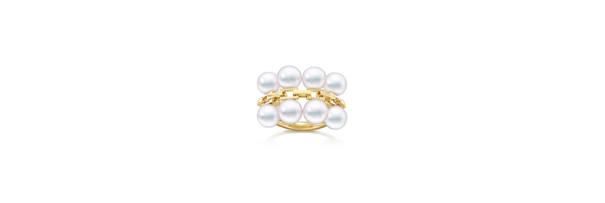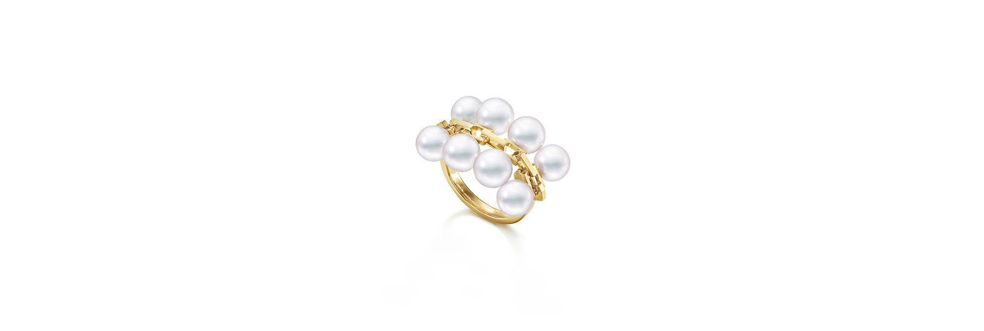 “sequence”戒指将成对相缀的圆润珍珠构成的矩形链节精心相连,打造充满雕塑感的时尚魅力。18K黄金的精致光芒为指间注入优雅华彩,立体灵动的造型于光影流转间绽放迷人光泽。