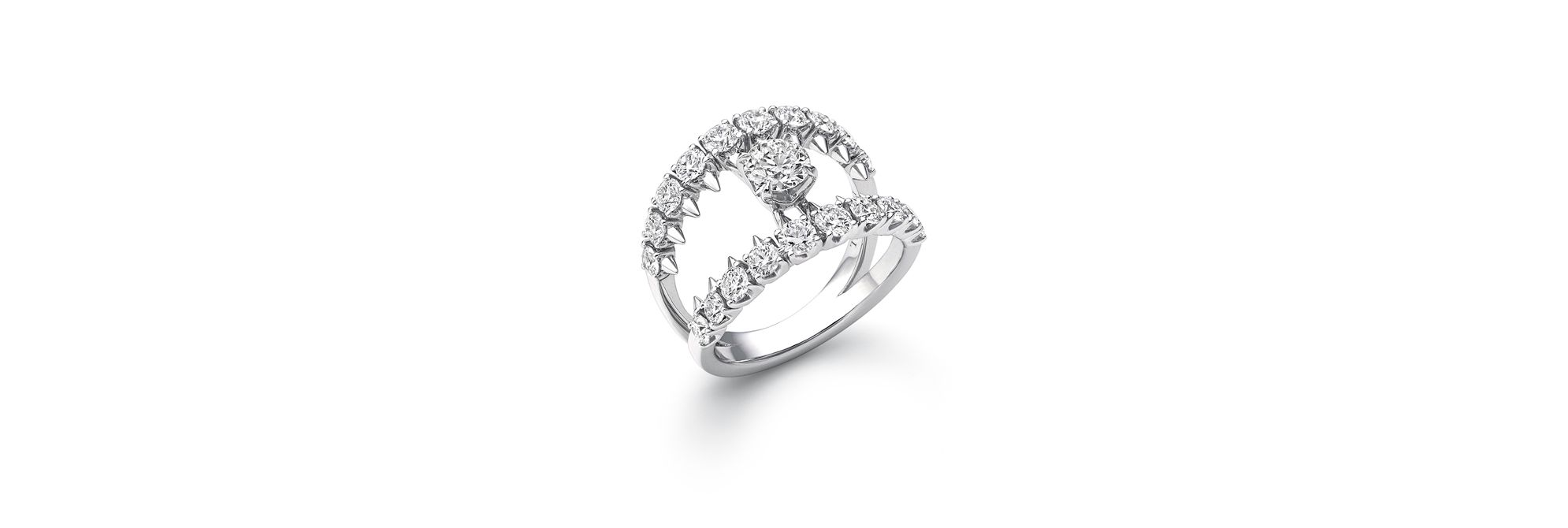 “danger diamonds”系列巧妙运用钻石的璀璨光芒,演绎危险食虫植物的无限迷人魅力。这款戒指以自然界中的动植物利齿为灵感,巧妙勾勒其捕猎时刻的张扬姿态。中央钻石绽放璀璨耀目的光芒。